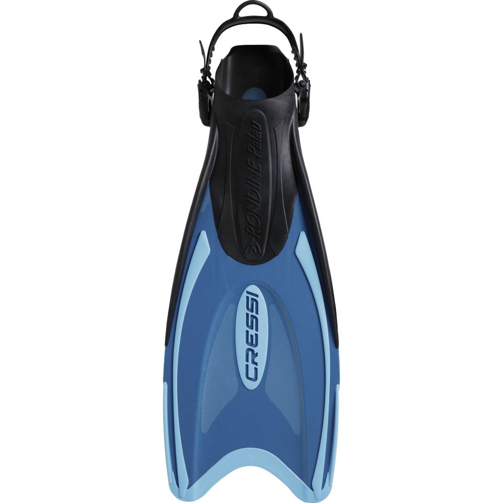 Palau opens the door to a new type of snorkeling and swimming fin. In fact, it was designed with two specific requirements in mind. The first was to create a footpocket that could easily adapt to at least three or four adjacent sizes, so that members of a family or a group of friends could share the same fin, or that it could be easily rented in a dive store or charter boat without requiring an endless number of sizes. The second requirement was to ensure elevated comfort and make it easy to put on, while still being an open-heel fin to be worn barefoot. The result is a fin that's incredibly practical, that adapts to every foot, and that can be fitted very quickly in any situation. The blade is made with a lightweight material that is nevertheless quite responsive, ensuring a fluid and non-tiring finning action that is also fairly powerful. The strap features a sturdy ring on the top so that it can be folded over on itself, and also so the fin can be hooked to the body or to equipment.