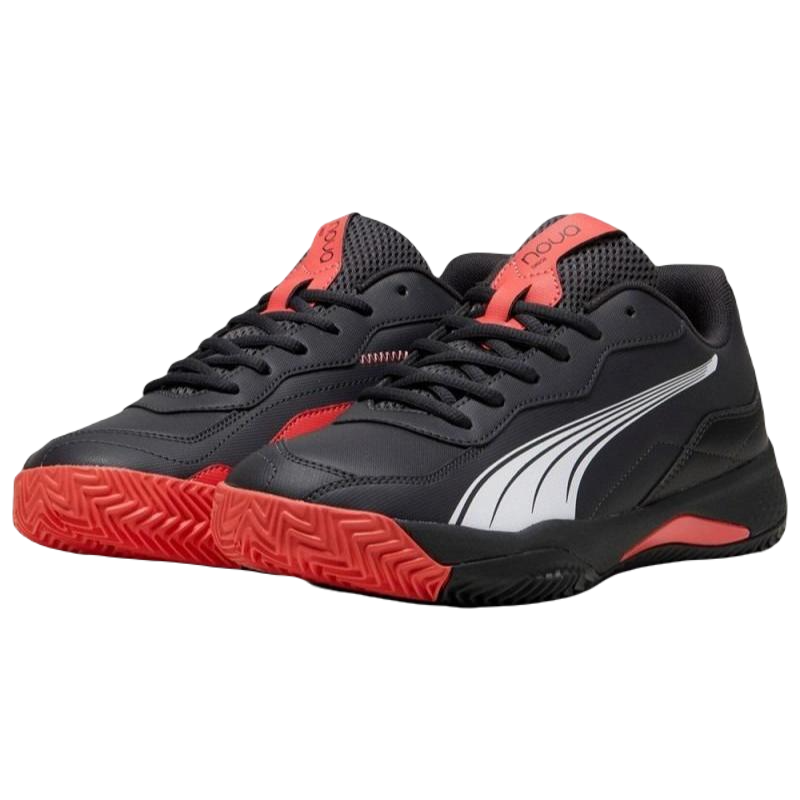 Boost your performance on the court with the Puma Nova Smash black and red Padel shoes - The model that perfectly balances comfort, style, and speed.