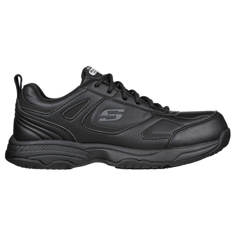 Sporty style, all day safety and comfort combine wearing Skechers Work™ Relaxed Fit®: Dighton - Bricelyn SR. This lace-up features a smooth synthetic and leather upper with a Skechers Memory Foam™ insole and slip-resistant traction outsole.